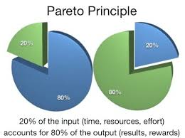 Eu sempre associo Pareto ao binômio 20-80. Usando a definição oficial, 80% dos fenômenos advém de 20% das causas! A figura ao lado traz uma definição legal, relacionando inputs e outputs.