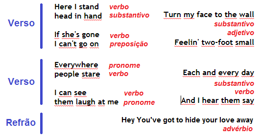 E o segundo conjunto verso-verso-refrão tem letra DIFERENTE, mas com o mesmo cuidado, rimando I com try, win com in, way com say, round com clowns, dá uma escorregada, rimando she com me (dois pronomes), e uma derrapada total, rimando them com them (a mesma palavra!). Perdoado, né?!