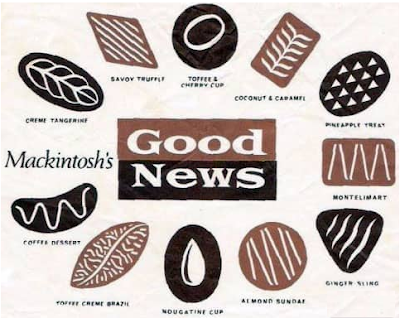 Não pude deixar de lembrar de Forest Gump sentado num banco de praça, e dizendo que a vida é como uma caixa de bombons, você nunca sabe que sabor vem no próximo que comer. Bem, isso não ocorria naquela caixa de bombons que o amigo amigo Eric 'Is God' Clapton comia com voracidade, um atrás do outro, na casa dele, e que o levou a escrever Savoy Truffle em sua homenagem. O amigo guitarrista estava em sério tratamento dentário naquele momento. E como um alerta pra cuidar dos dentes no "But you'll have to have them all pulled out after the Savoy truffle"), em ótimos falsetes de George, harmonizados por Paul. Esta frase é a chave da canção, ela fecha cada um dos versos da canção, inclusive o instrumental, e ainda é repetido no final, portanto ouve-se 6 (seis) vezes o conselho que doces fazem mal aos dentes, é até profilático! Naquela década, os homens ingleses não primavam por cuidar de suas arcadas, vide David Bowie 'eu era assim e fiquei assim'. Good News era uma tradicional caixa de bombons Mackintosh, cuja imagem eu recuperei abaixo pra ilustrar. Note os sabores todos da letra dos dois versos ali, com seus formatos, de forma que não haveria surpresas, e inclusive como perdeu-se a oportunidade de ter Brazil numa letra Beatle, se George tivesse escolhido o sabor do canto inferior esquerdo!!
